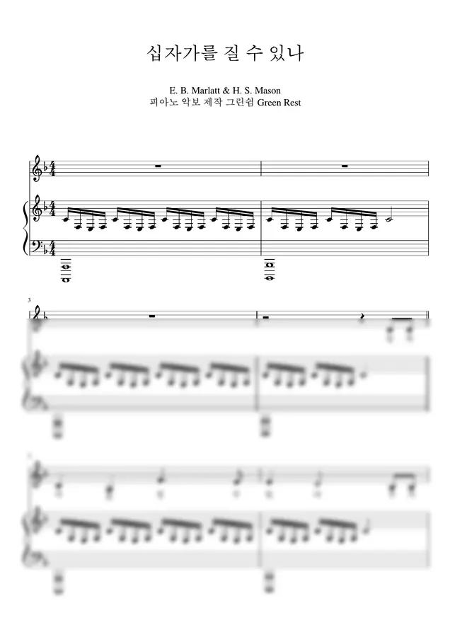 찬송가 461장 '십자가를 질 수 있나' 반주 악보입니다