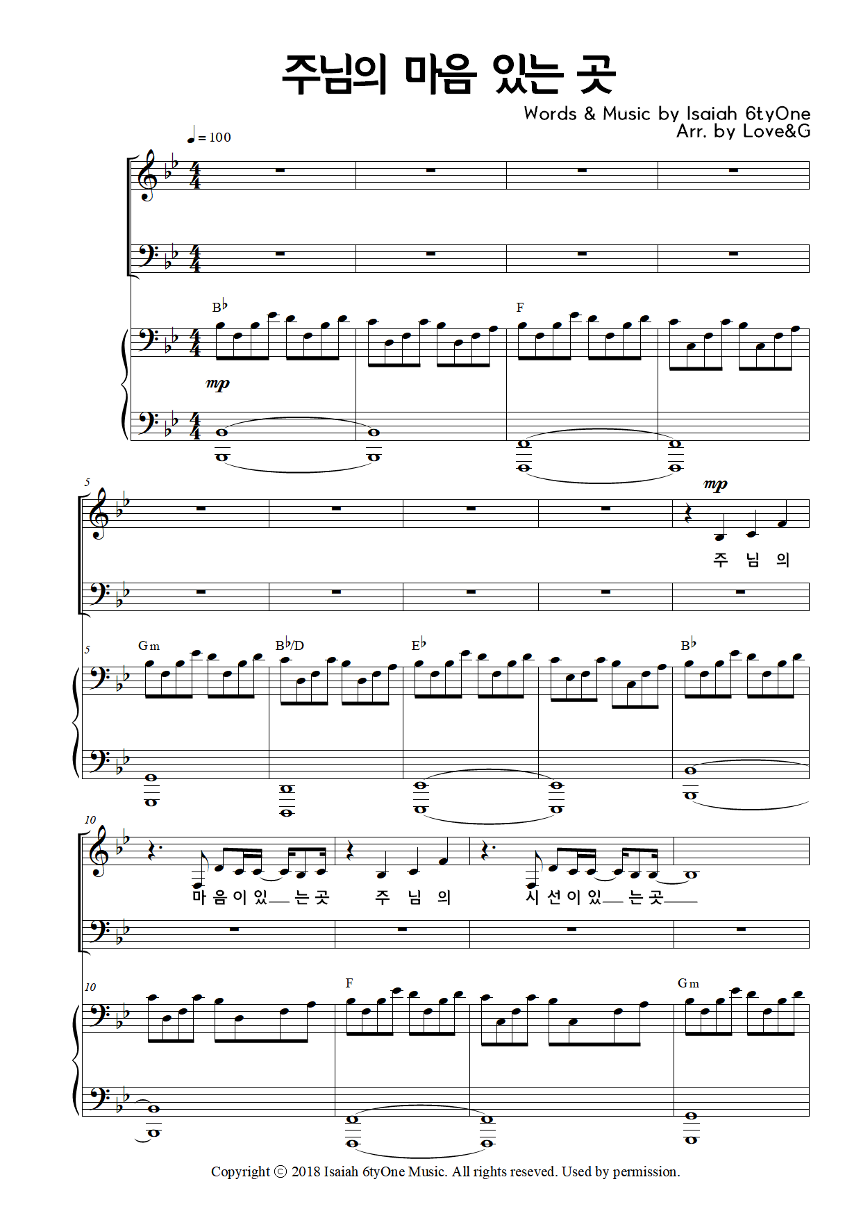 Isaiah 6tyOne - 주님의 마음 있는 곳 (4부 합창 SATB) by Love&G