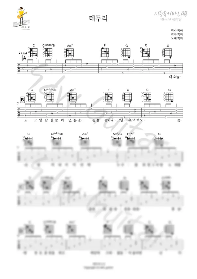 백아 - 테두리 (GUITAR TAB) by 서동욱
