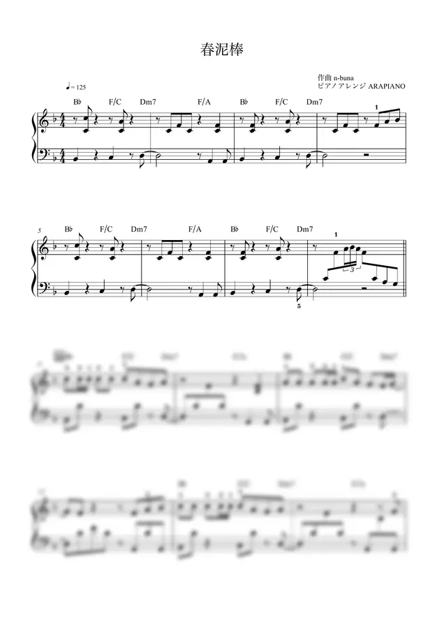 YouTubeのレッスン動画用にアレンジしたヨルシカ「春泥棒」中級フルサイズです。
