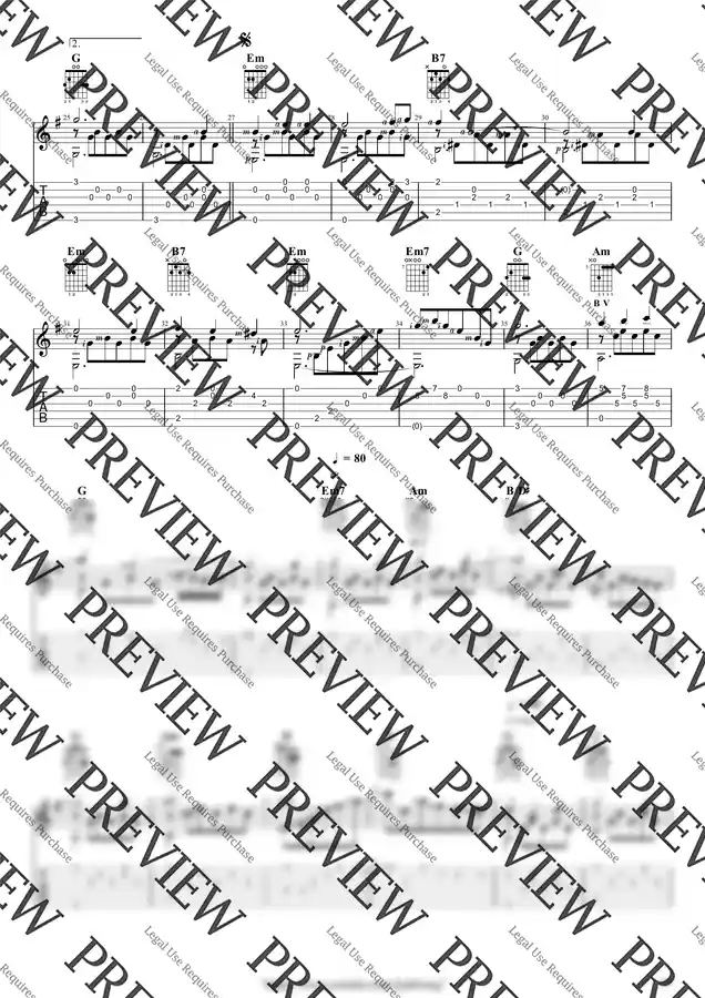 ⇀ 최대한 오선 노트와 타브를 함께 기재합니다.