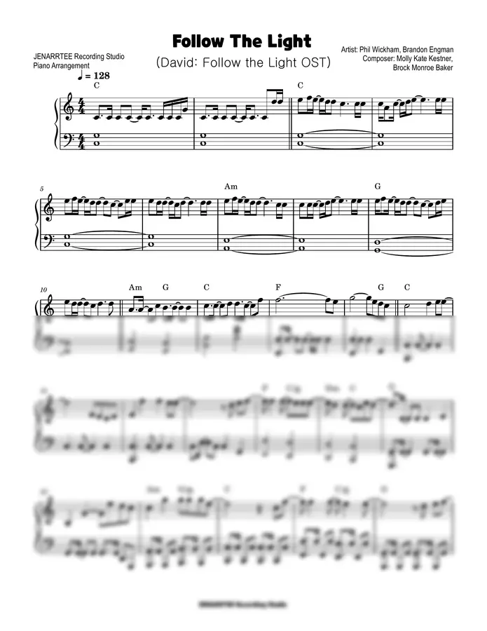 Phil Wickham & Brandon Engman 'Follow The Light' (다윗 OST) 피아노 악보.