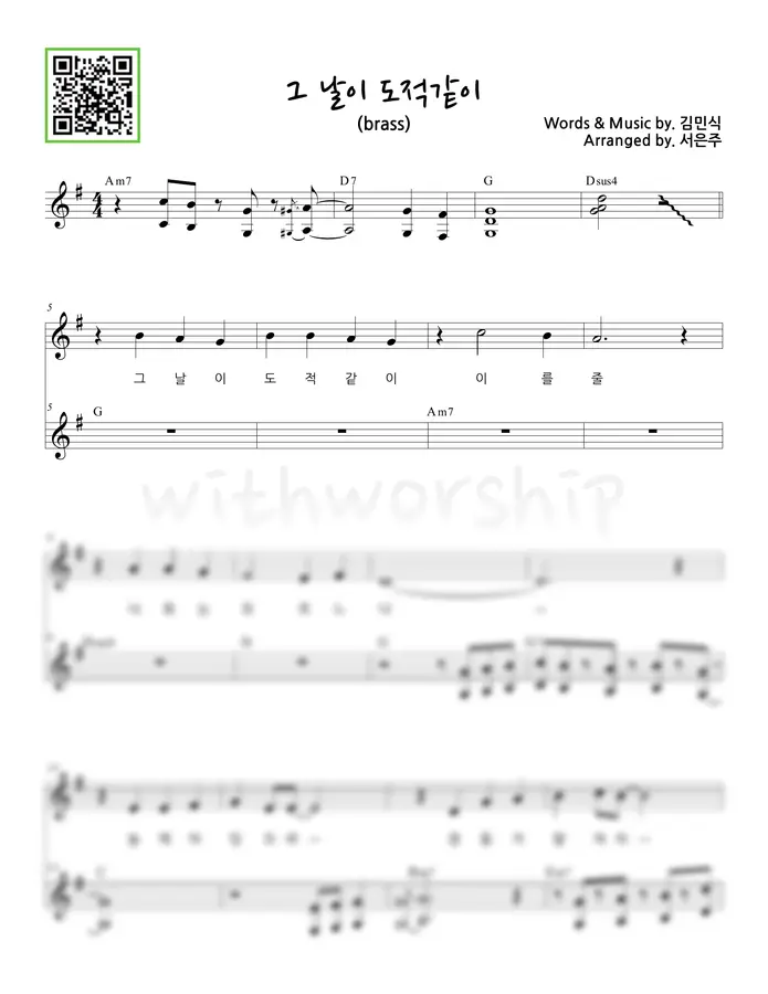 김민식 - 그 날이 도적같이 G key(brass) (세컨건반) by 서은주