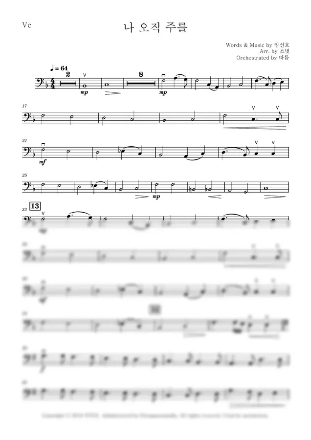 합창을 위한 첼로 반주 편곡 악보입니다.