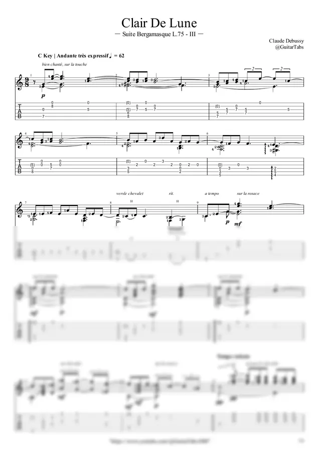 C. Debussy(클로드 드뷔시) - Clair De Lune(Suite Bergamasque L.75 - III) by GuitarTabs