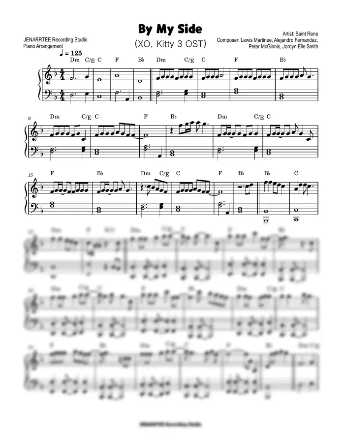 Saint Rene 'By My Side' (엑스오, 키티 시즌 3 OST) 피아노 악보.
