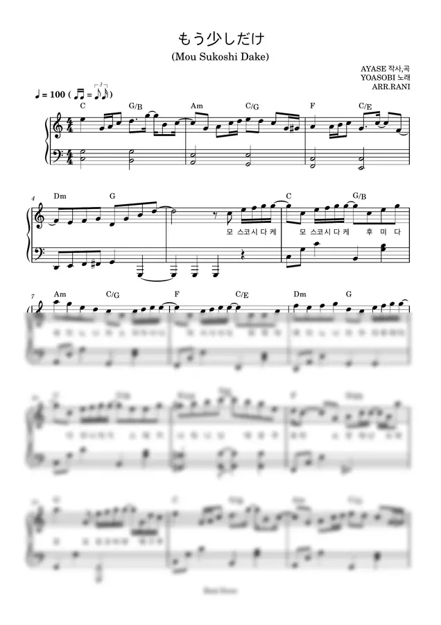 요아소비(YOASOBI) - もう少しだけ (모스코시다케 /조금만 더) (다장조)