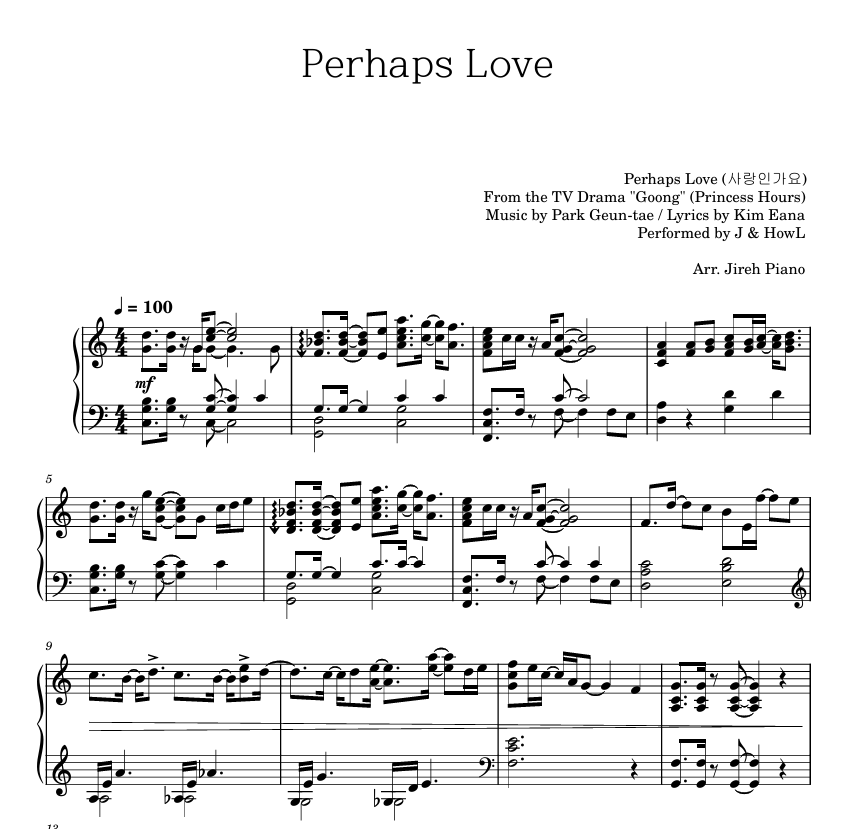Park Geun-tae / Kim Eana - 궁 OST , 사랑인가요 (Ver.3 _ C key) (난이도별 악보) by Jireh piano1