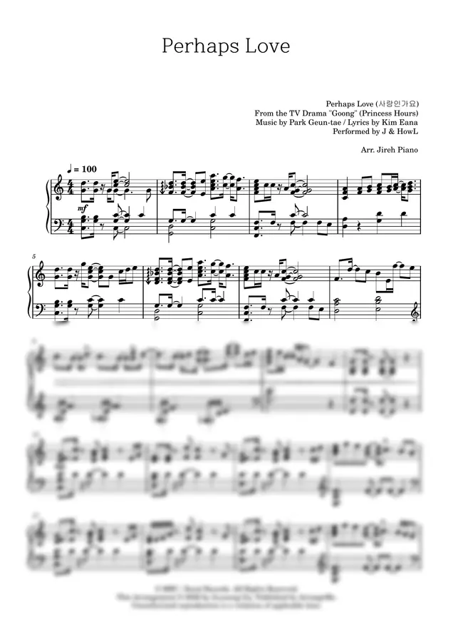 Park Geun-tae / Kim Eana - 궁 OST , 사랑인가요 (Ver.3 _ C key) (난이도별 악보) by Jireh piano0