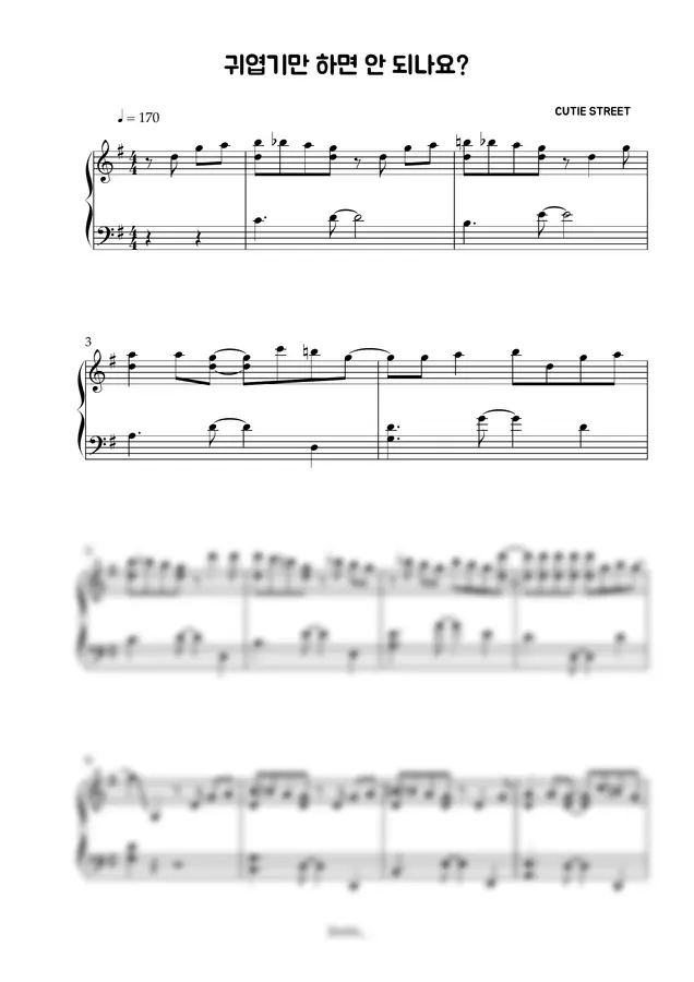 빠른 곡이라 어렵게 느껴질 수 있지만 최대한 풍성하고 쉽게 연주할 수 있도록 만든 악보라 차근차근 연습하시면 금방 재밌게 연주할 수 있습니다~ 감사합니다:)