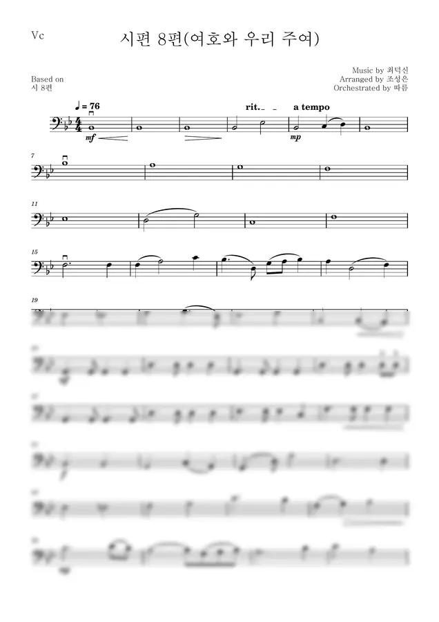 4부합창(SATB)과 함께 연주할 수 있도록 편곡된 첼로 반주 악보입니다.