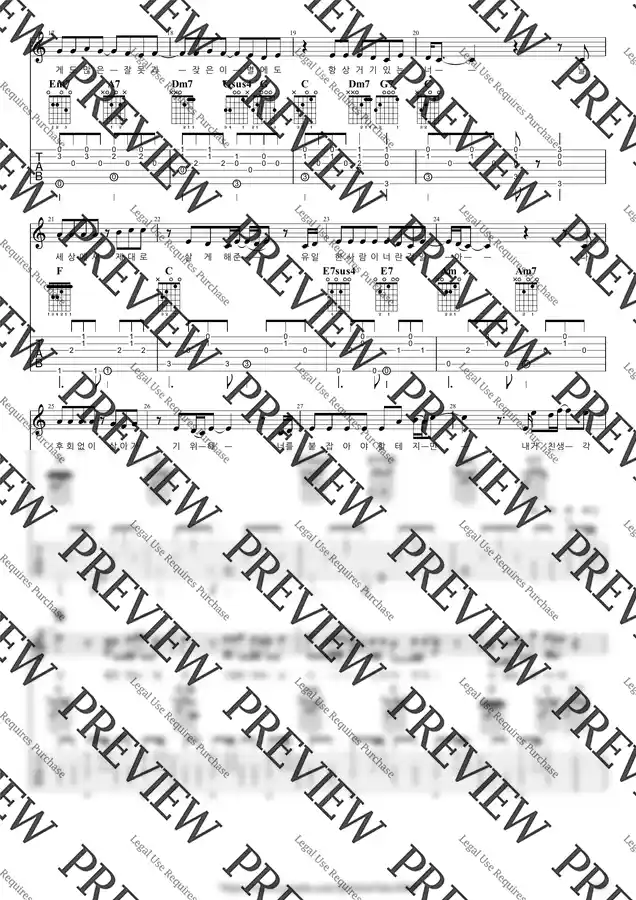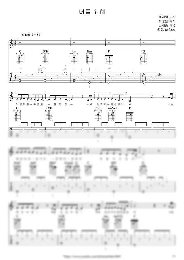 C Key / 4p / 2단(노래+반주) / 5선(Staff) / 타브(TAB) / 가사(Lyrics) / 코드(Chords)