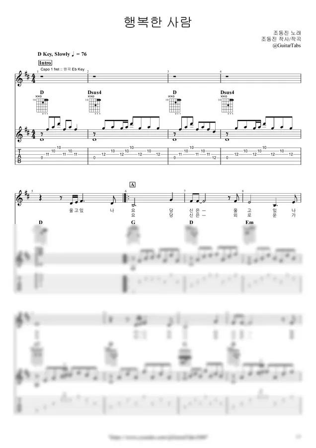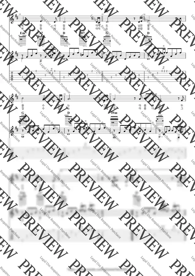 D Key / 3p / 2단(노래+반주) / 5선(Staff) / 타브(TAB) / 가사(Lyrics) / 코드(Chords)