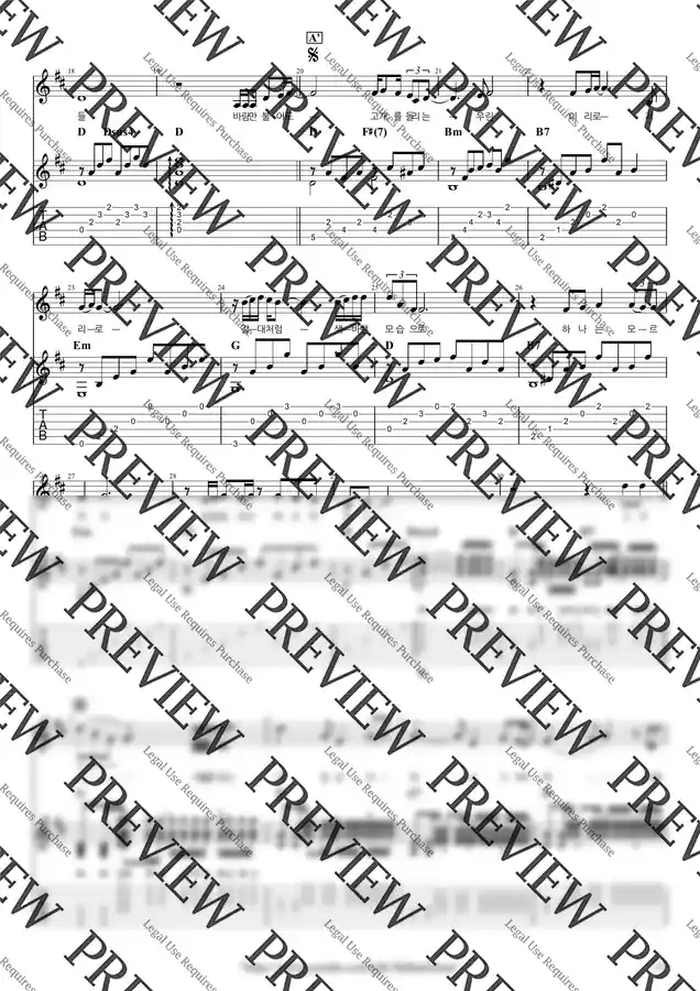 (+) (플러스) 악보는 오선, 타브, 운지, 코드 다이어그램 등 모든 기보를 다 표현하도록 업데이트 된 연습용 원본 악보와, 페이지 넘김을 최소화 한 제본용 악보까지 두 개의 악보를 모두 제공해 드립니다. 원본 악보로 연습한 후 제본용 악보를 악보집에 담아 편리하게 연주하실 수 있습니다. (2페이지 이내면 원본, 제본 악보 동일할 수 있음)