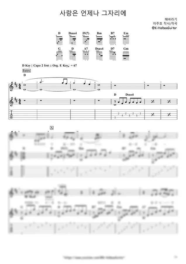 해바라기 - 사랑은 언제나 그 자리에 (+) by K-Halbae Guitar 2p 미리보기