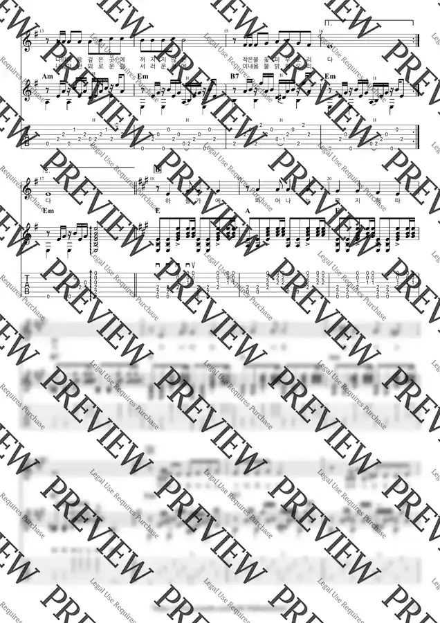 (+) (플러스) 악보는 오선, 타브, 운지, 코드 다이어그램 등 모든 기보를 다 표현하도록 업데이트 된 연습용 원본 악보와, 페이지 넘김을 최소화 한 제본용 악보까지 두 개의 악보를 모두 제공해 드립니다. 원본 악보로 연습한 후 제본용 악보를 악보집에 담아 편리하게 연주하실 수 있습니다. (2페이지 이내면 원본, 제본 악보 동일할 수 있음)