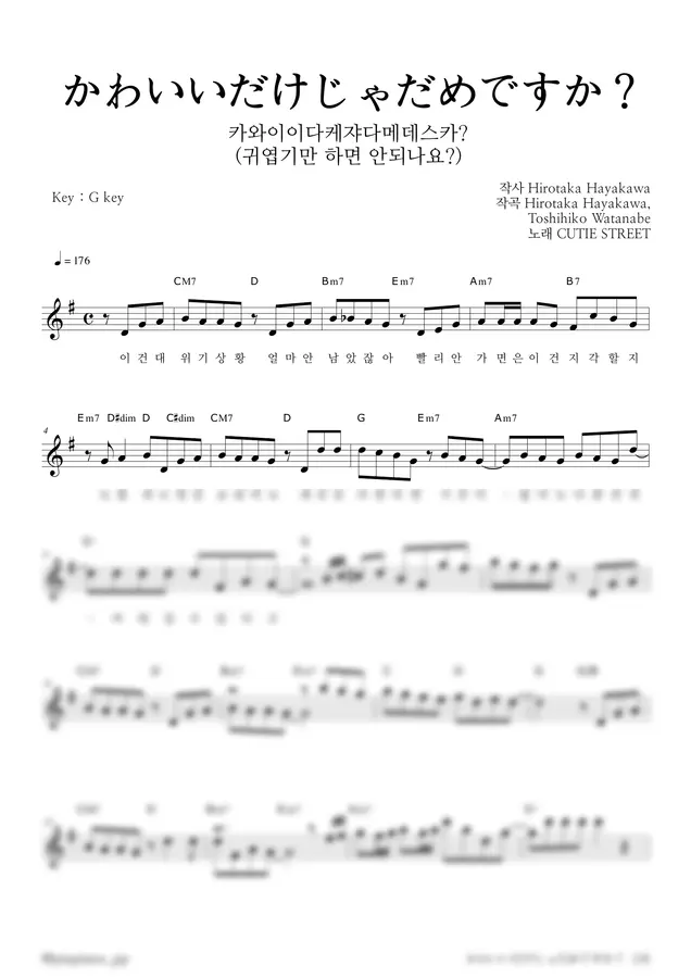 かわいいだけじゃだめですか?(카와이이다케쟈다메데스카?) 멜로디악보입니다.