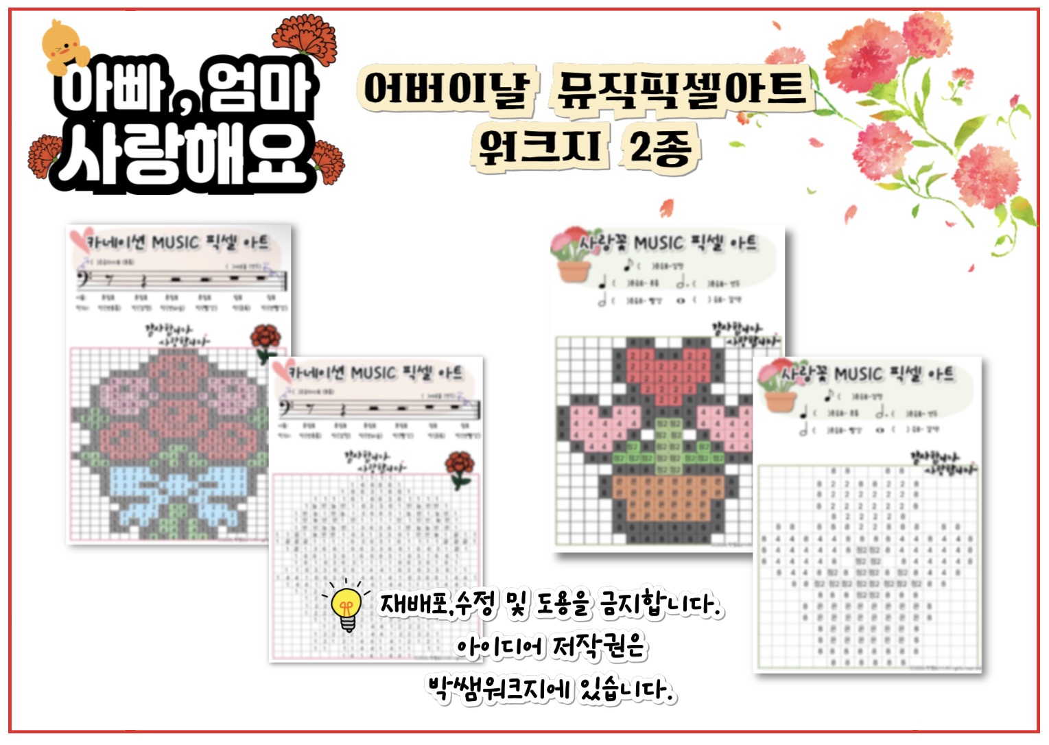 음악워크지 - 어버이날 뮤직 픽셀아트 2종세트 (음표,쉼표) by 박쌤