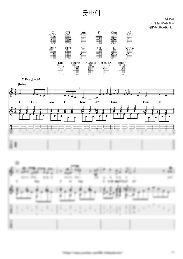 이문세 - 굿바이 (+) by K-Halbae Guitar 1p 미리보기