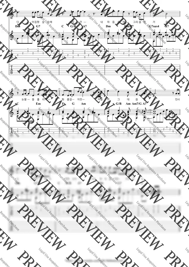 (+) (플러스) 악보는 오선, 타브, 운지, 코드 다이어그램 등 모든 기보를 다 표현하도록 업데이트 된 연습용 원본 악보와, 페이지 넘김을 최소화 한 제본용 악보까지 두 개의 악보를 모두 제공해 드립니다. 원본 악보로 연습한 후 제본용 악보를 악보집에 담아 편리하게 연주하실 수 있습니다. (2페이지 이내면 원본, 제본 악보 동일할 수 있음)