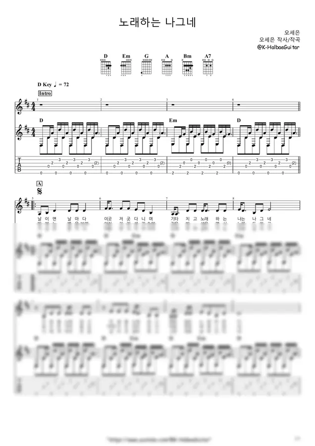 오세은 - 노래하는 나그네 (+) by K-Halbae Guitar 2p 미리보기