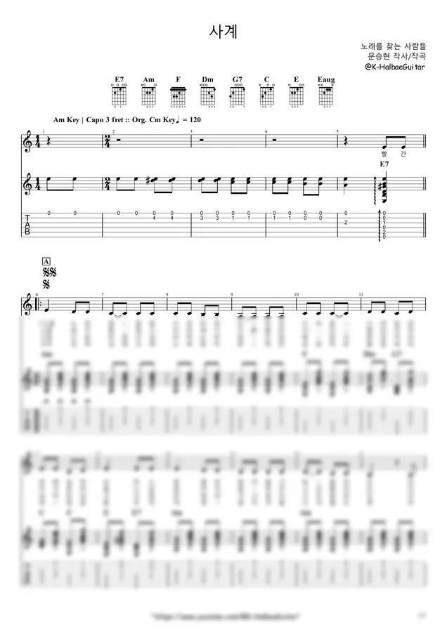 노찾사(노래를 찾는 사람들) - 사계 (+) by K-Halbae Guitar 2p 미리보기