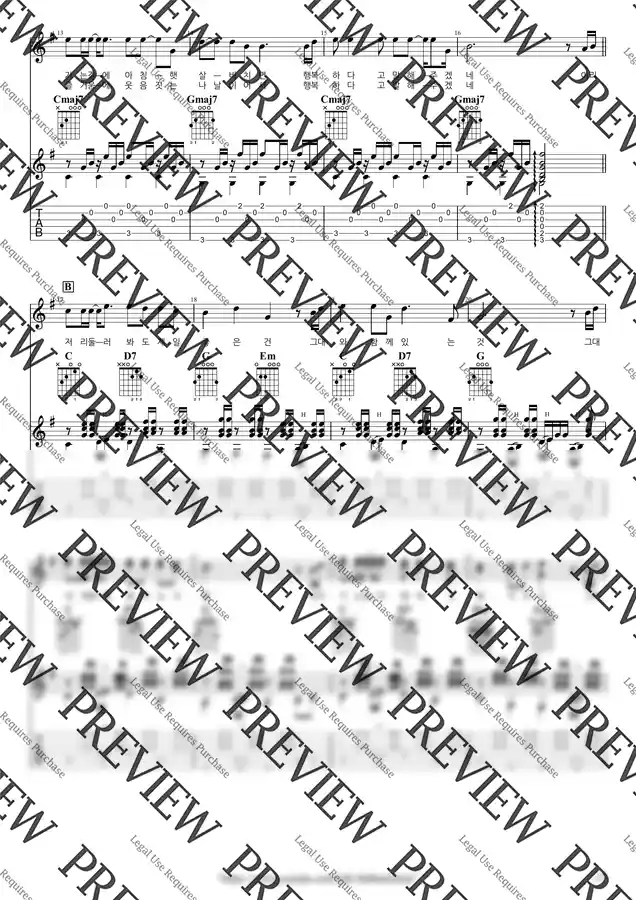 (+) (플러스) 악보는 오선, 타브, 운지, 코드 다이어그램 등 모든 기보를 다 표현하도록 업데이트 된 연습용 원본 악보와, 페이지 넘김을 최소화 한 제본용 악보까지 두 개의 악보를 모두 제공해 드립니다. 원본 악보로 연습한 후 제본용 악보를 악보집에 담아 편리하게 연주하실 수 있습니다. (2페이지 이내면 원본, 제본 악보 동일할 수 있음)