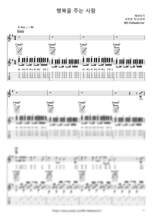 해바라기 - 행복을 주는 사람 (+) by K-Halbae Guitar 2p 미리보기