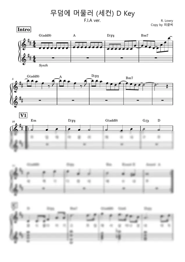 피아워십 - 무덤에 머물러 세컨 (D Key) by 피클씨