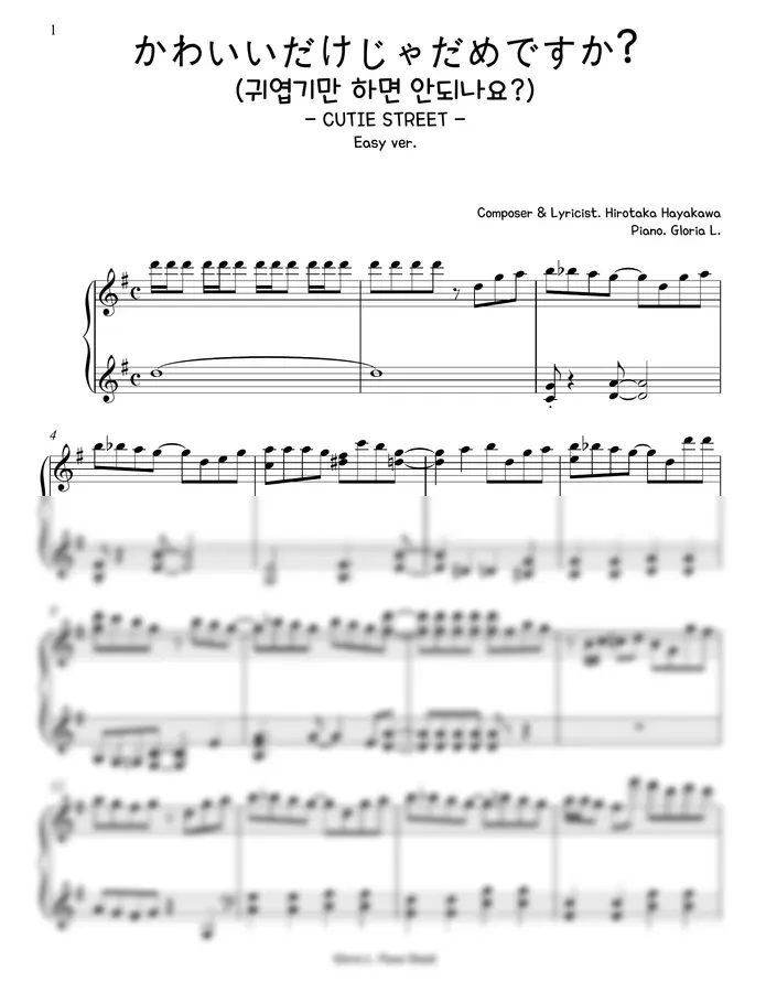 CUTIE STREET (큐티 스트릿) - かわいいだけじゃだめですか? (귀엽기만 해도 되나요?) (쉬운악보) by 글로리아엘 1p 미리보기