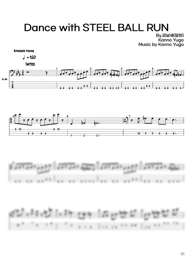 안녕하세요, 칸노 유고 (菅野祐悟) - Dance with STEEL BALL RUN 베이스 기타 TAB 악보 영상입니다.