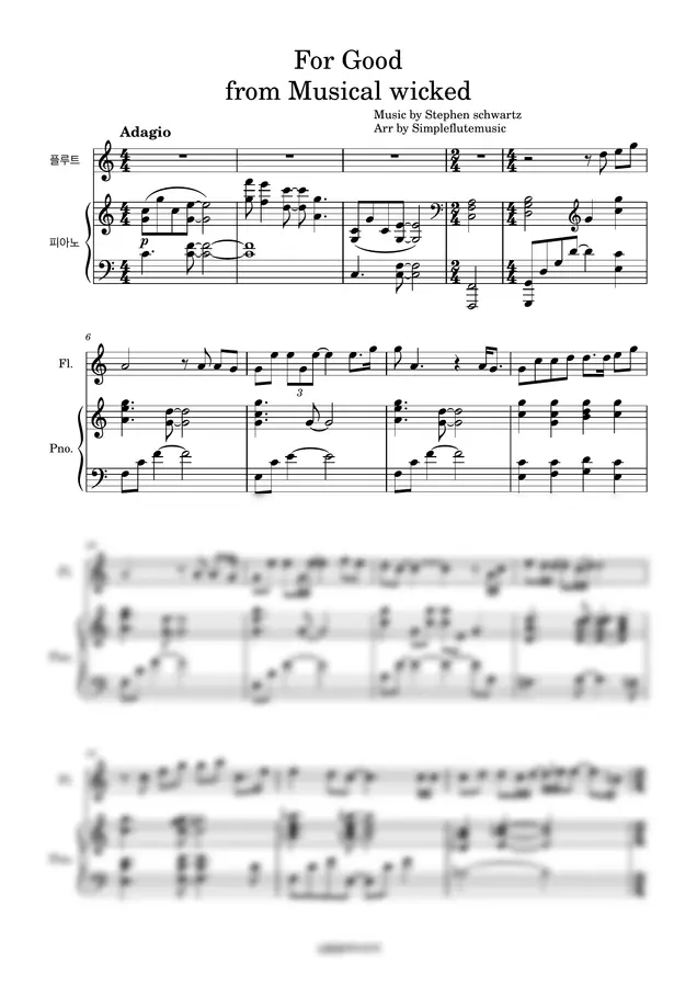 뮤지컬 위키드 OST - For Good-[플루트][피아노][성인취미연주곡]
