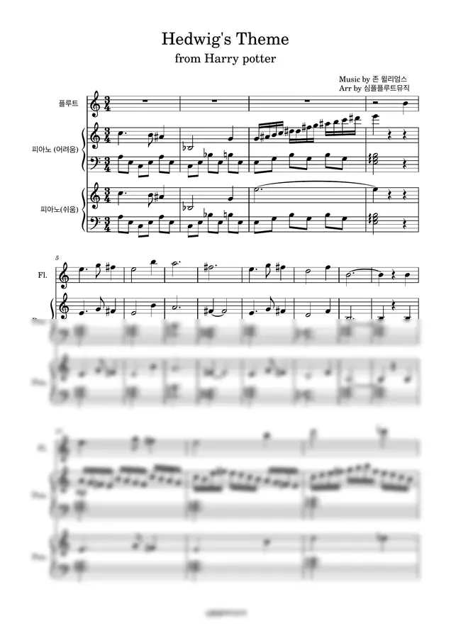 해리포터 OST - 헤드위그의 테마 Hegwig's Theme-[플루트][피아노 2가지 ver] 2p 미리보기