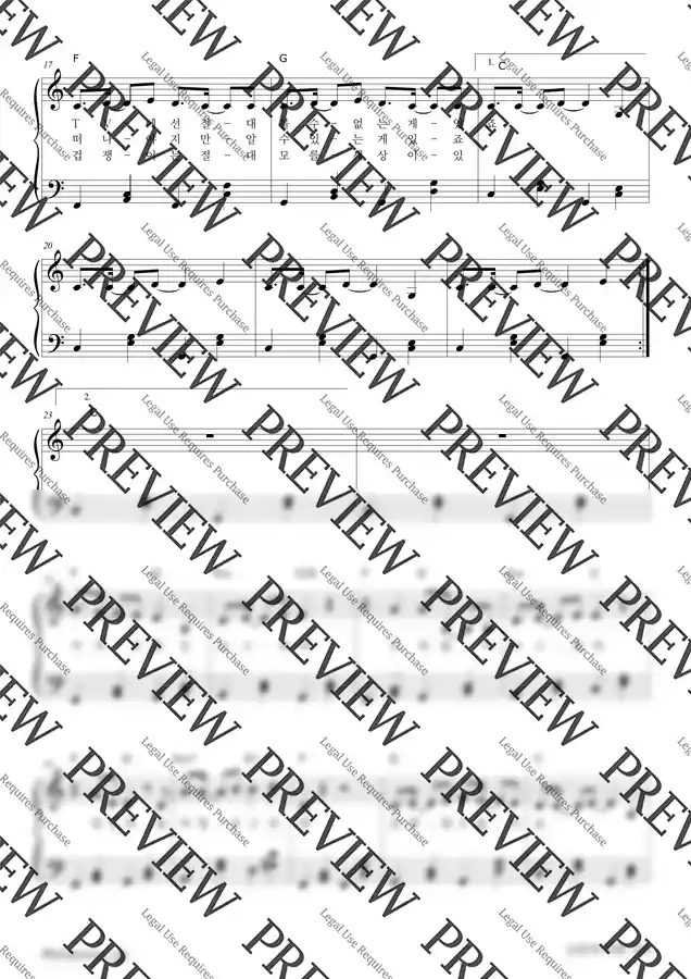 - 오른손은 멜로디와 왼손은 단순한 반주 악보로 이루어진 2단악보입니다.