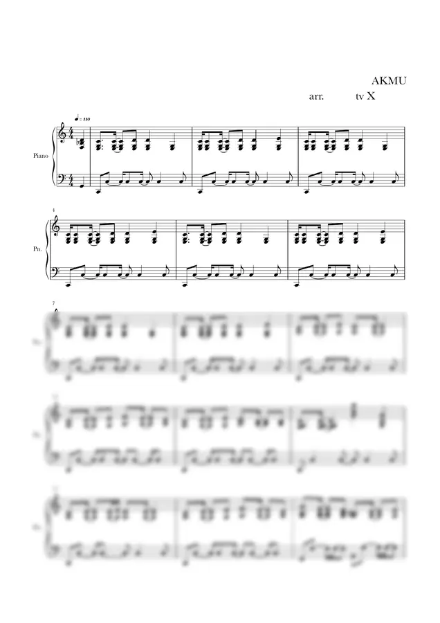 원곡느낌을 최대한 살린 어려운 버전의 악보입니다.