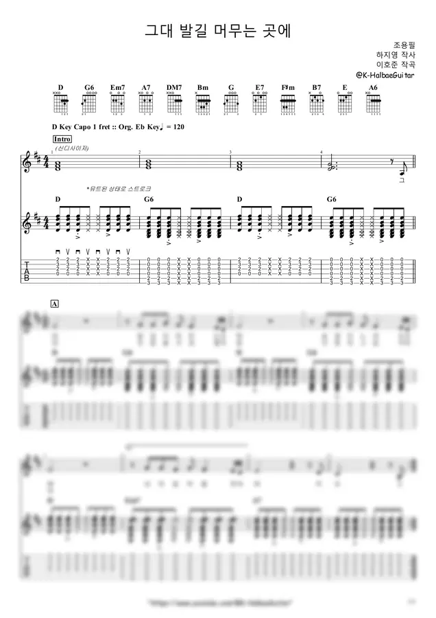 조용필 - 그대 발길 머무는 곳에 (+) by K-Halbae Guitar 1p 미리보기