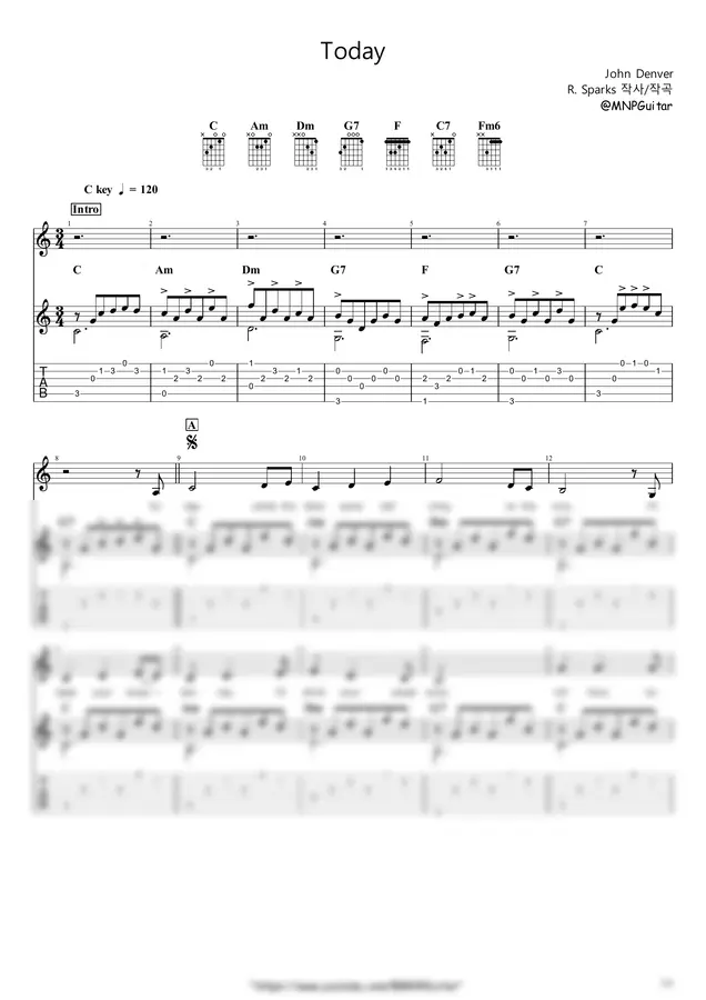 John Denver(존 덴버) - Today (+) by M&P Guitar 1p 미리보기