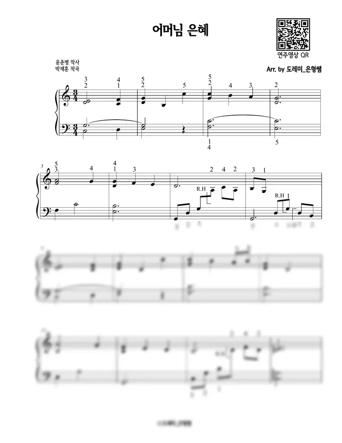 어버이날 연주할 수 있는 <어머님 은혜> 를 C30수준 학생들이 단기간 안에 연주할 수 있도록 편곡해보았습니다.
