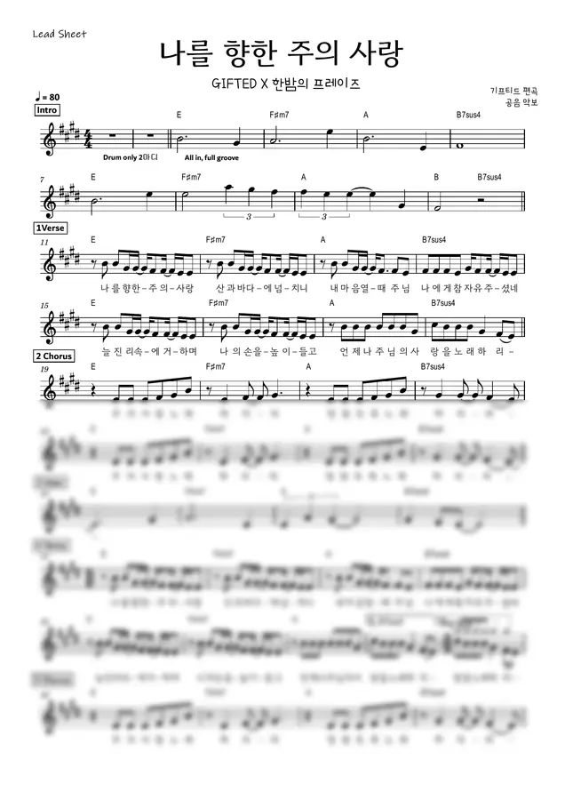 GIFTED기프티드 - 나를 향한 주의 사랑(리드시트 C/D/Eb/E/F)