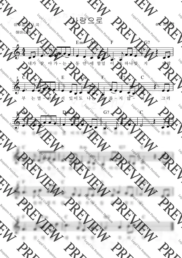 해바라기 - [시니어 악보] 사랑으로(1단, C키) by 최심향 1p 미리보기