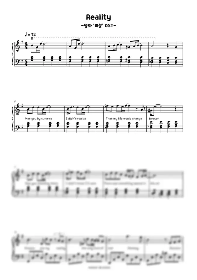 영화 '라붐' OST - Reality (보통&쉬운악보)