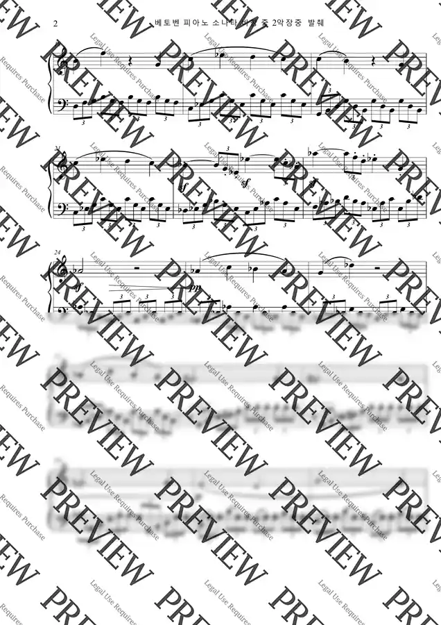 베토벤 피아노소나타 비창 2악장의 발췌곡입니다. 체르니 100번부터 30번 정도 수준의 연주가 가능한 분에게 적합합니다.