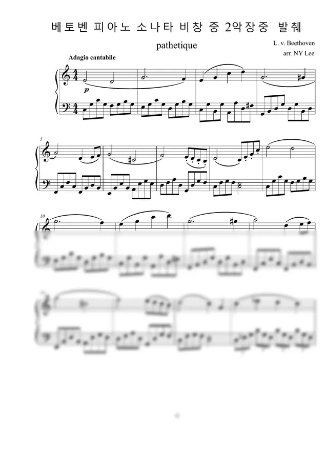 Beethoven - Piano Sonata No.8 비창 2악장_쉬운편곡 by 열심히작곡하고픈(NY Lee)