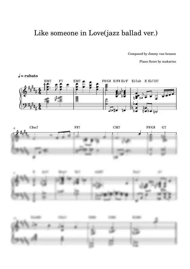 오늘은 'Like someone in love'를 재즈 발라드 스타일로 리하모니해서 연주해 보았습니다. 🌙✨