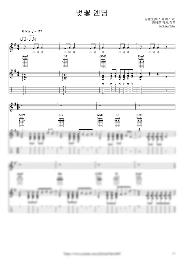 장범준(버스커 버스커) - [프리미엄] 벚꽃 엔딩 by GuitarTabs 2p 미리보기