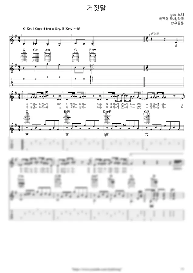 G Key / 4p / 2단(노래+반주) / 5선(Staff) / 타브(TAB) / 가사(Lyrics) / 코드(Chords)