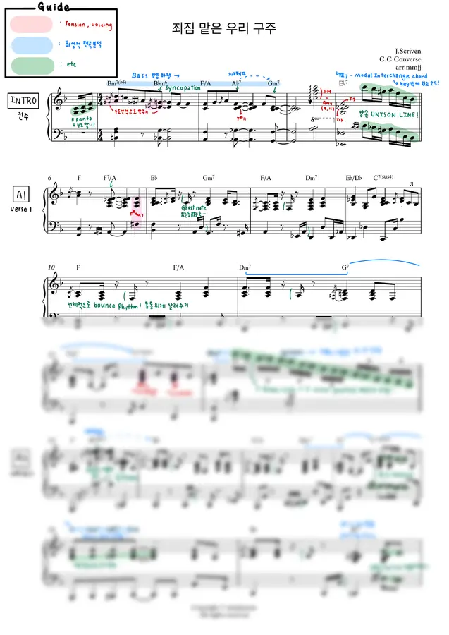 피아노 양손 편곡 된 악보입니다.