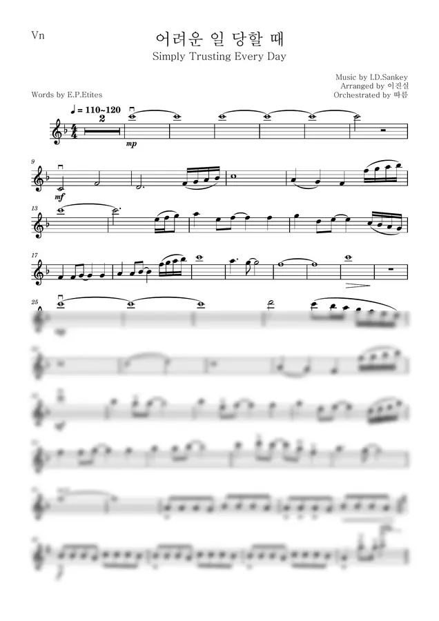 4부합창(SATB)과 함께 연주할 수 있도록 편곡된 바이올린 반주 악보입니다.