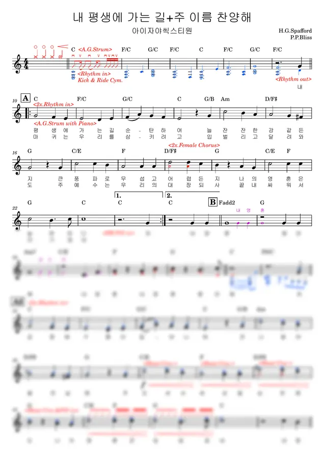 "내 평생에 가는 길"과 함께 "주 이름 찬양해" 2곡이 연결된 버전의 찬양 리드시트를 준비하였습니다.