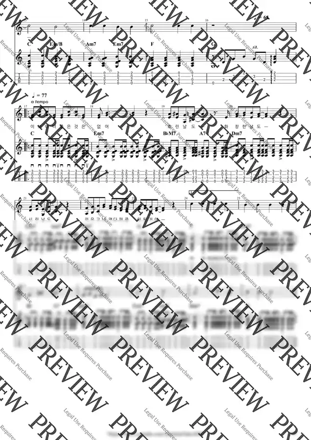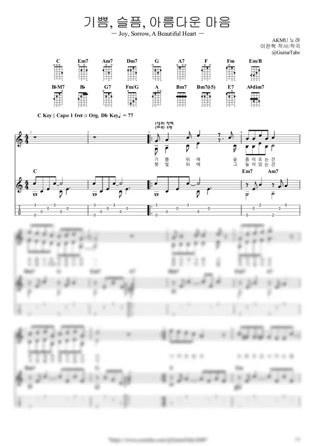 C Key / 4p / 2단(노래+반주) / 5선(Staff) / 타브(TAB) / 가사(Lyrics) / 코드(Chords)